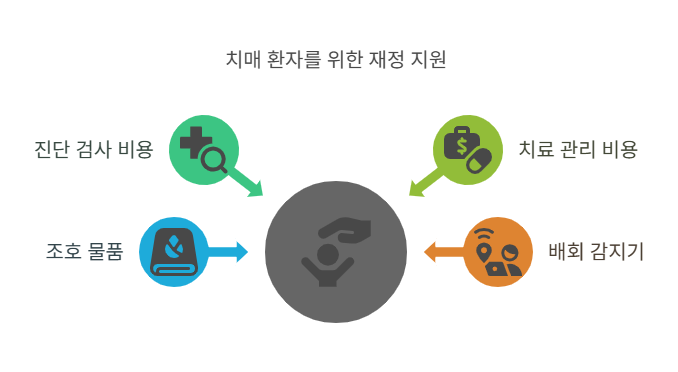 치매 환자의 의료비 부담을 경감하기 위해 진료비, 약제비 등을 지원하는 제도입니다.